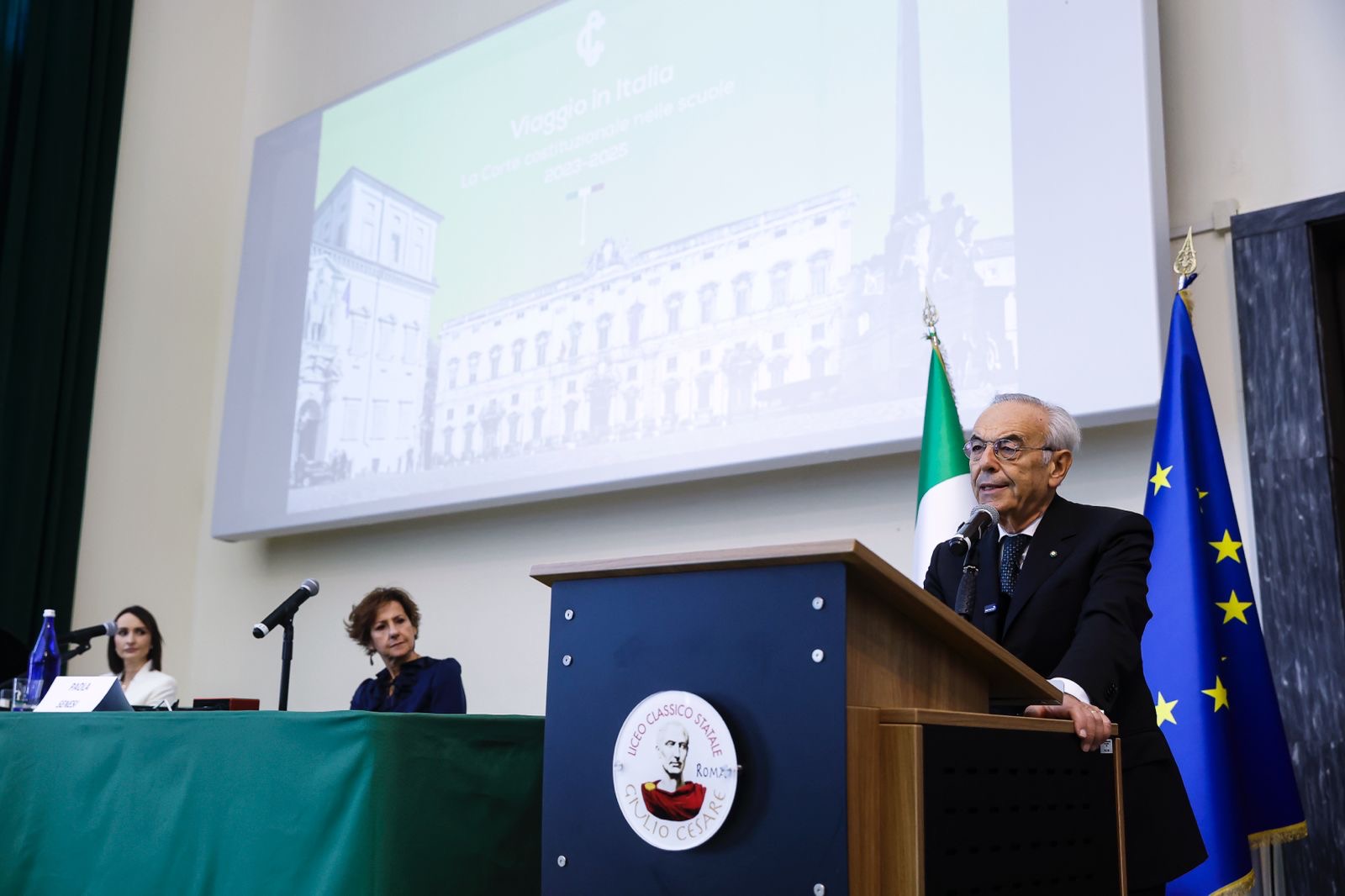 È ripartito, con la nuova edizione 2025-2027, il “Viaggio in Italia” dei giudici costituzionali nelle scuole secondarie di II grado. Il 2 ottobre, nell’aula magna del Liceo classico statale Giulio Cesare di Roma, alla presenza del Ministro dell’istruzione e del merito Giuseppe Valditara, il Presidente della Corte costituzionale Giovanni Amoroso ha incontrato le studentesse e gli studenti, dialogando con loro sul tema “Come nasce la Costituzione”. All’evento inaugurale hanno preso parte anche i giudici Stefano Petitti, Angelo Buscema, Maria Rosaria San Giorgio, Marco D’Alberti e Massimo Luciani.