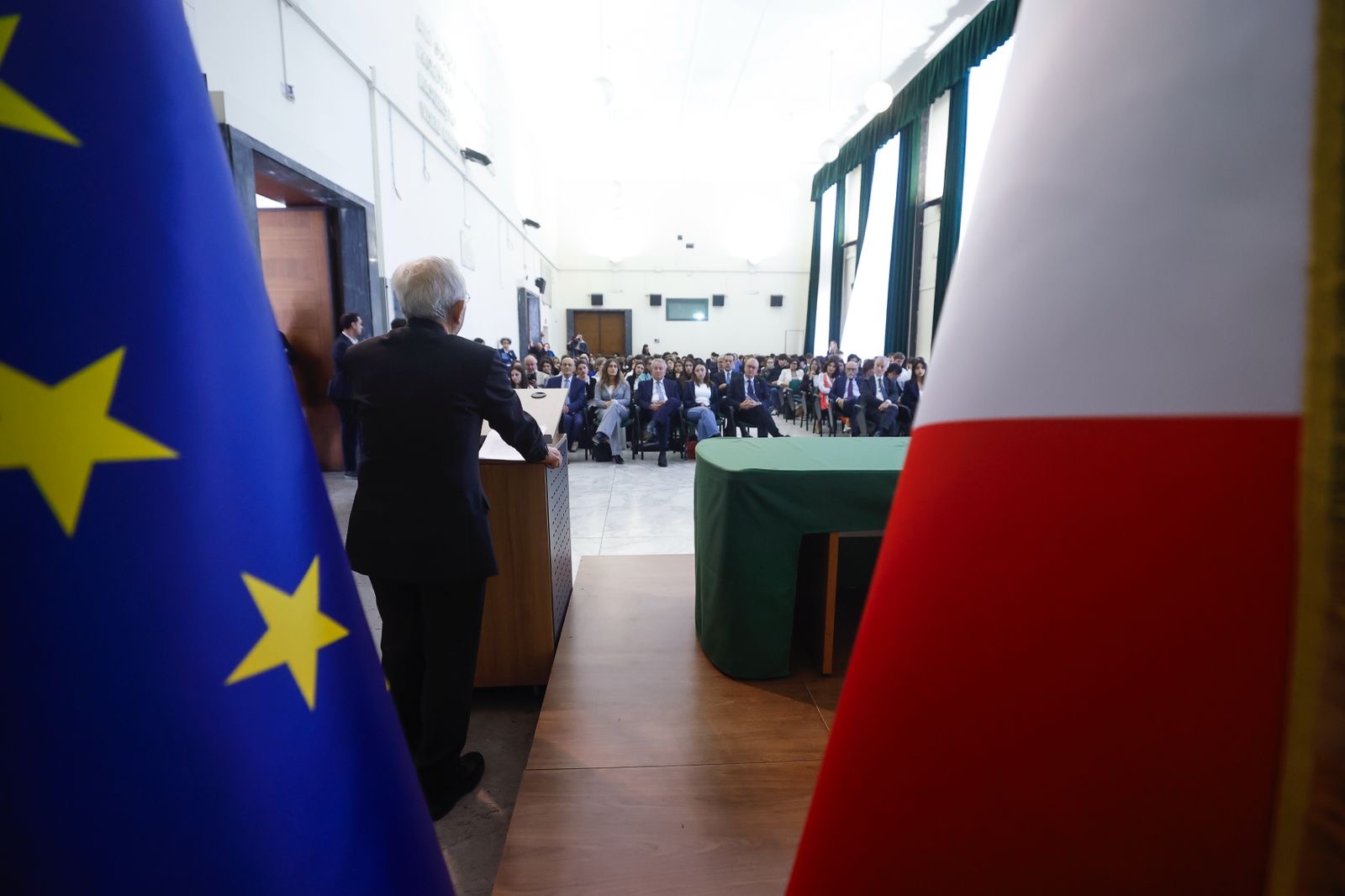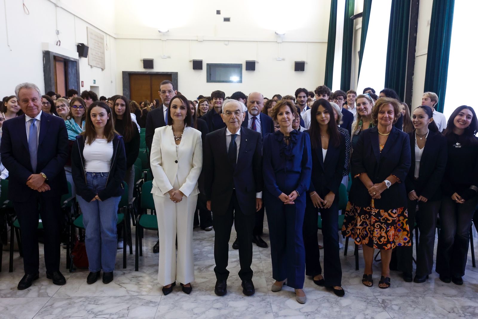 Prima dell’incontro, il Presidente Amoroso e il Ministro Valditara, hanno visitato lo storico istituto, nato nel 1933 come Regio Liceo Ginnasio Giulio Cesare in piazza Indipendenza e inaugurato con l’attuale sede di Corso Trieste nel 1936, un edificio che rappresentava all’epoca il più alto livello di edilizia scolastica. Un istituto con una lunga storia, purtroppo anche di tragici eventi, come l’espulsione di docenti e allievi ebrei nel 1938, a causa dell’applicazione delle leggi razziali volute dal regime fascista, e l’attentato del 1980, durante gli anni di piombo, in cui i terroristi di estrema destra dei Nuclei armati rivoluzionari assassinarono l’appuntato di pubblica sicurezza Francesco Evangelista, in servizio di pattuglia davanti alla scuola.