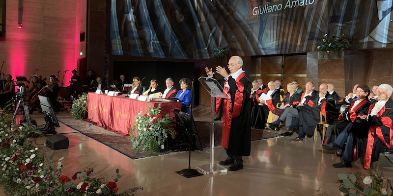N ell'Aula magna dell'Università di Roma Sapienza, in occasione della cerimonia di inaugurazione dell'anno accademico 2022-2023 (il 720esimo dalla fondazione) è stato conferito al presidente della Corte costituzionale Giuliano Amato il dottorato honoris causa in Studi politici.