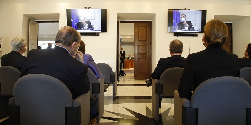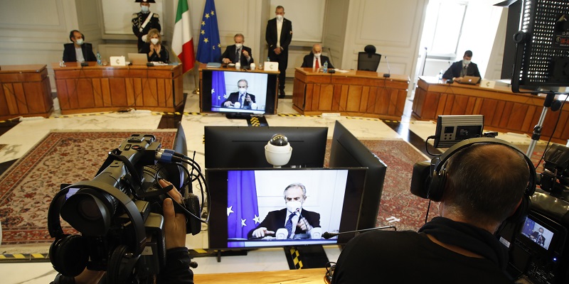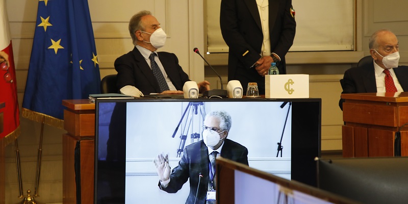 - Alla presenza dei giudici della Corte e della stampa il presidente Coraggio ha incontrato i giornalisti. Alcuni momenti della conferenza stampa.