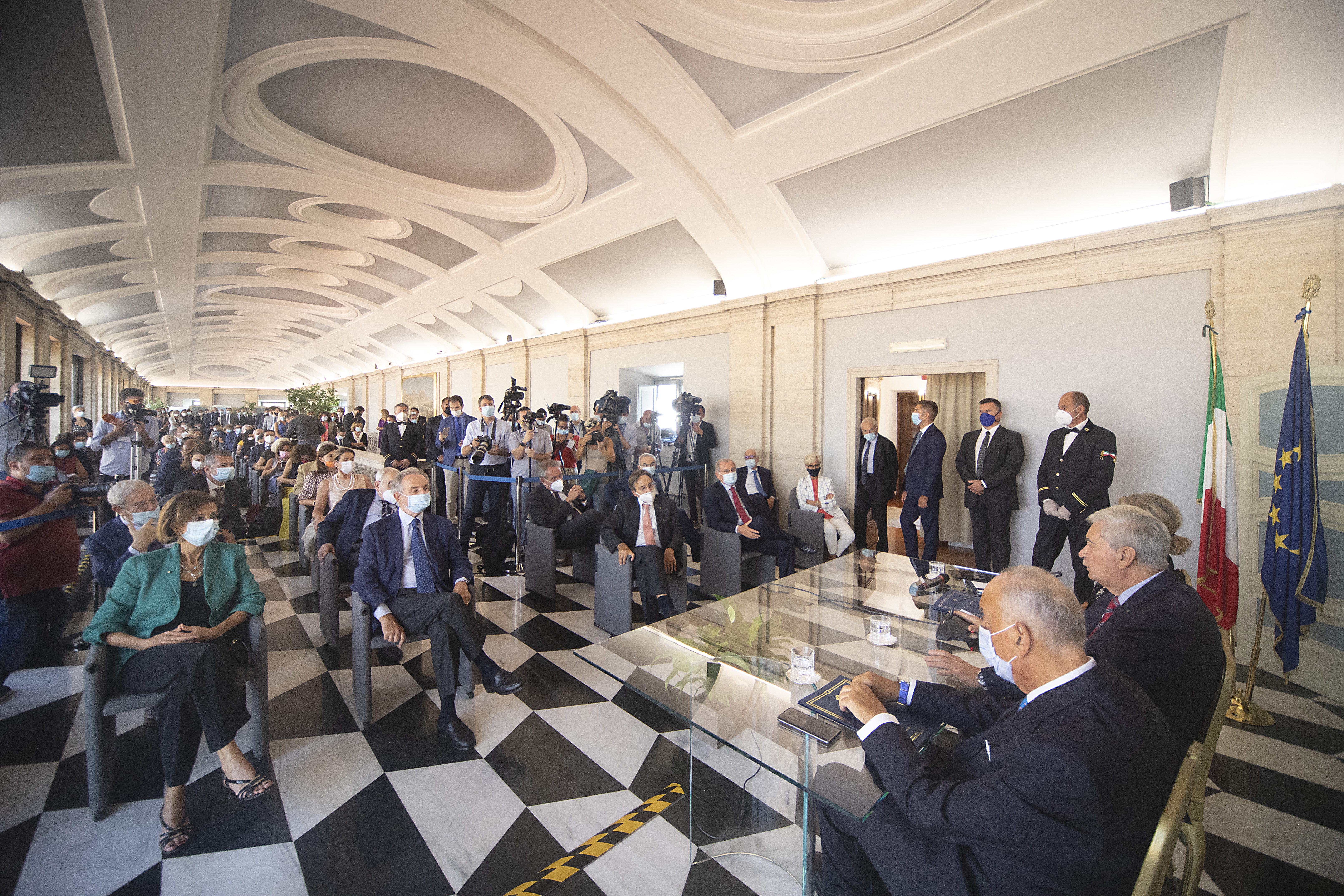 - Alla presenza dei giudici della Corte e della stampa il presidente Morelli ha incontrato i giornalisti.Alcuni momenti della conferenza stampa tenutasi presso il salone Belvedere di palazzo della Consulta.